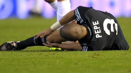 Πύρρειος αποδεικνύεται η νίκη της Ρεάλ Μαδρίτης επί της Βαλένθια στο «Μεστάγια» με 3-2. Ο Πέπε αποχώρησε στο τέλος του πρώτου ημιχρόνου με τραυματισμό στο γόνατο, που όπως φαίνεται είναι σοβαρός. Ο Πορτογάλος αμυντικός προσγειώθηκε άτσαλα μετά από μία διεκδίκηση κεφαλιάς με τον Νταβίντ Βίγια και σύμφωνα με τις πρώτες εκτιμήσεις έχουν πειραχθεί οι χιαστοί στο δεξί του γόνατο, πιθανώς και μηνίσκος. Ο διεθνής άσος, που είχε τραυματιστεί στο ίδιο γόνατο και στη διάρκεια της θητείας του στην Πόρτο, αναμένεται να μείνει εκτός γηπέδων για 3-6 μήνες. Αυτό θα φανεί από τις εξετάσεις που θα του γίνουν στη Μαδρίτη την Κυριακή.