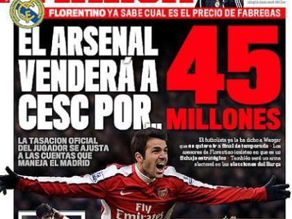 Πρόταση 45 εκατ. ευρώ στην Άρσεναλ για την απόκτηση του Σεσκ Φάμπρεγκας προτίθεται να καταθέσει το προσεχές καλοκαίρι η Ρεάλ Μαδρίτης, σύμφωνα με δημοσίευμα της «Marca». Ο διεθνής Ισπανός μέσος φέρεται να έχει εκφράσει στον προπονητή των «κανονιέρηδων», Αρσέν Βενγκέρ, την επιθυμία να αποχωρήσει από το Λονδίνο για να επαναπατριστεί στο τέλος της περιόδου.