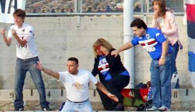 Στην Ιταλία μια φίλαθλος της Σαμπντόρια τραυματίστηκε σοβαρά στο δεξί της μάτι από φωτοβολίδα , κατά την διάρκεια του αγώνα με την Άσκολι, στο στάδιο «Ντελ Δούκα», για το πρωτάθλημα της Ιταλίας .