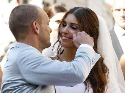 Καταφύγιο στην... εκκλησία φαίνεται πως βρίσκουν όλοι οι απογοητευμένοι του Παγκοσμίου Κυπέλλου. Έτσι μετά τον Φίλιπ Λαμ, που την Τετάρτη παντρεύτηκε τη σύντροφό του, σειρά πήρε το Σάββατο ο Γουέσλεϊ Σνάιντερ. Ο Ολλανδός μέσος έξι μέρες μετά το χαμένο τελικό του Μουντιάλ ενώθηκε με τα «ιερά» δεσμά με την Γιολάντε Καμπάου φαν Κάσμπεργκεν. Οι ιδιότητες της 25χρονης Ολλανδέζας ξεπερνούν σε... μάκρος το όνομά της, καθώς είναι μοντέλο, ηθοποιός σε σαπουνόπερα και τηλεπαρουσιάστρια.