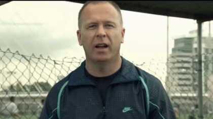 «Σήκωσε τον κώλο σου από ‘κει και πήγαινε να προπονηθείς, να ιδρώσεις, να τρέξεις… Δε θα πετύχεις τίποτα με το να πεις ότι είσαι κουρασμένος. Αν δε σηκωθείς τώρα, το μέγιστο που θα καταφέρεις, θα ‘ναι να κάτσεις εδώ (δείχνει τον πάγκο και φεύγει)… (επανέρχεται μετά από μερικά δευτερόλεπτα): Είσαι ακόμα εκεί»;