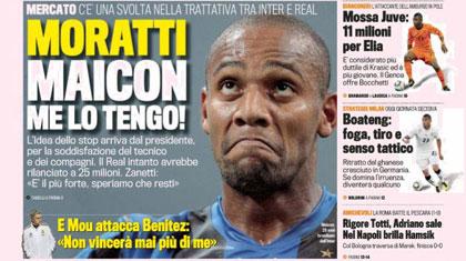 Καμία πρόθεση να πουλήσει τον Μαϊκόν στη Ρεάλ Μαδρίτης δεν έχει η διοίκηση της Ίντερ, σύμφωνα με δημοσιεύματα του ιταλικού Τύπου. Συγκεκριμένα, οι «νερατζούρι» θέλουν να κρατήσουν τον Βραζιλιάνο μπακ-χαφ στο δυναμικό τους και για αυτό τον λόγο απέρριψαν την τελευταία πρόταση των «μερένχες».
