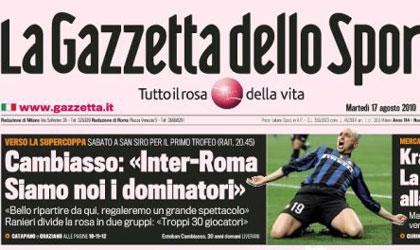 Η Ίντερ και η Ρόμα κυριαρχούν τα τελευταία χρόνια στην Ιταλία, όπως δήλωσε ο Εστέμπαν Καμπιάσο στην «Gazzetta Dello Sport». Με αφορμή το Σούπερ Καπ Ιταλίας (21/08), ο Αργεντινός μέσος τόνισε ότι δεν χρειάζεται να ανάβουν τα αίματα μεταξύ των παικτών όπως συμβαίνει συνήθως στους αγώνες των δύο ομάδων.