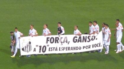 Τη συμπαράστασή τους στον άτυχο Πάουλο Ενρίκε «Γκάνσο» εξέφρασαν οι παίκτες και οι οπαδοί της Σάντος. Οι ποδοσφαιριστές της «Πέισε» μπήκαν στον Σαββατιάτικο αγώνα εναντίον της Γκοϊάς στο Πακαεμπού, κρατώντας ένα πανό που έγραφε, «Γερά Γκάνσο. Το «10» σε περιμένει». Ο 20χρονος μέσος της Σάντος θα μείνει 6 μήνες εκτός αγωνιστικών χώρων όπου και αναμένεται να επιστρέψει πλέον το 2011!