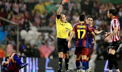 Από τα αποδυτήρια είδε ο Φερνάντο Αμορεμπιέτα το υπόλοιπο του αγώνα Αθλέτικ Μπιλμπάο - Μπαρτσελόνα (1-3), αφού αποβλήθηκε στο 34’ της αναμέτρησης για το σκληρό μαρκάρισμα που έκανε στον Αντρές Ινιέστα.