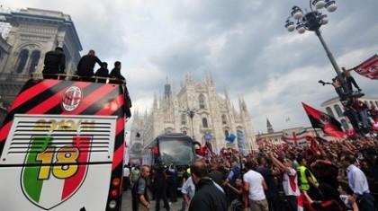 Περισσότεροι από 50.000 φίλοι της Μίλαν αποθέωσαν τους παίκτες της ομάδας για την κατάκτηση του φετινού τίτλου της Serie A.