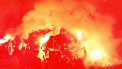 «Η εκτόξευση βεγγαλικών προς τους παίκτες και η απόπειρα να ρίξουν έναν πάγκο με ποτά από τις κερκίδες αποτελούν απειλές για τη ζωή παικτών και οπαδών», αναφέρει ανακοίνωση της Γαλλικής Ομοσπονδίας που εκδόθηκε τη Δευτέρα.