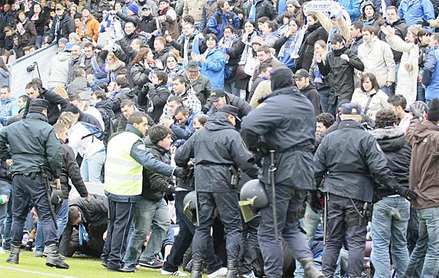 Λίγο έλειψε να υπάρχουν θύματα στην αναμέτρηση της Λούγκο με την Οβιέδο (2-2) για την τρίτη κατηγορία της Ισπανίας. Όταν οι φιλοξενούμενοι άνοιξαν το σκορ, οι περίπου 2.000 φίλοι της ομάδας συνωστίστηκαν στην άκρη της κερκίδας και το κιγκλίδωμα δεν… άντεξε, με αποτέλεσμα δεκάδες εξ αυτών να σωριαστούν στο χορτάρι σαν ανθρώπινη χιονοστιβάδα.