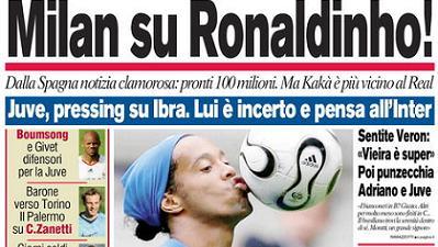 Ο σούπερ σταρ της Μπαρτσελόνα, αποτελεί «διακαή πόθο» του Μπερλουσκόνι, ο οποίος σε εκδήλωση για το «αντίο» του Ντεμέτριο Αλμπερτίνι στην ενεργό δράση, είχε δηλώσει, «όνειρο μου είναι να δω μια ημέρα συμπαίκτες στη Μίλαν τους Ροναλντίνιο και Κακά». Ωστόσο, όπως αναφέρει η εφημερίδα της Ρώμης, ο «καβαλιέρε» προτίθεται να «θυσιάσει» τον τελευταίο για να φέρει τον «Ρόνι» στο Μιλάνο.