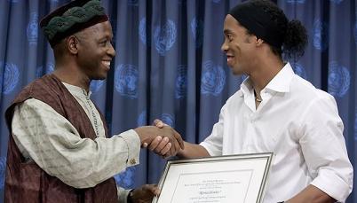 Ο Ροναλντίνιο στην υπηρεσία της ανθρωπότητας. Ο διασημότερος σύγχρονος ποδοσφαιριστής του πλανήτη ονομάστηκε την Παρασκευή στη Νέα Υόρκη Πρέσβης Καλής Θέλησης των Ηνωμένών Εθνών θέτοντας εαυτόν στη μάχη κατά της φτώχειας σε όλο τον κόσμο.