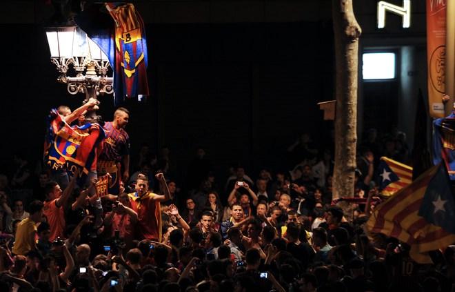 Εκατοντάδες φίλοι της Μπαρτσελόνα ξενύχτησαν πανηγυρίζοντας την κατάκτηση του Κυπέλλου μετά το 3-0 επί της Μπιλμπάο στον τελικό του «Βιθέντε Καλντερόν». Η φιέστα για τον τελευταίο από τους 14 τίτλους της εποχής Γκουαρντιόλα έχει προγραμματιστεί για σήμερα.