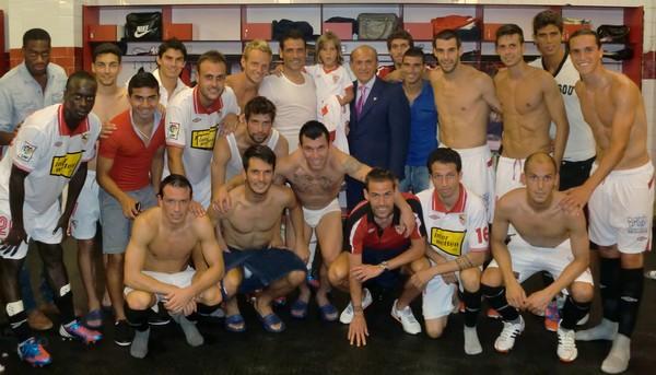 Στιγμές συγκίνησης στα αποδυτήρια της Σεβίλλης. Ο γιος του αδικοχαμένου Αντόνιο Πουέρτα, που «έσβησε» από ανακοπή καρδιάς που είχε υποστεί σε αγώνα με τη Χετάφε στις 25 Αυγούστου του 2007, επισκέφτηκε την ομάδα του πατέρα του στο περιθώριο του φιλικού που έγινε στη μνήμη του εκλιπόντος.