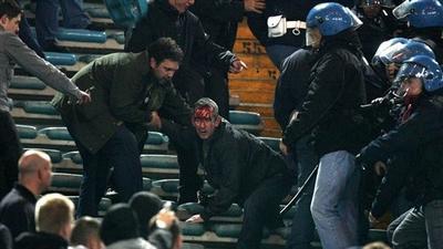 Οι συγκρούσεις έγιναν ανάμεσα στους Άγγλους εκδρομείς και τους «τζιαλορόσι» στην περιοχή γύρω από το γήπεδο. Οι συμπλοκές ξεκίνησαν κοντά στις δύο γέφυρες «Πόντε Μίλβιο» και Ντούκα Ντ’Αόστα». Στη διάρκεια του αγώνα, οι οπαδοί των δύο ομάδων «αντάλλαξαν» αντικείμενα και φωτοβολίδες, ενώ πλησίασαν επικίνδυνα στα γκολ που σημειώθηκαν, υποχρεώνοντας τις αστυνομικές δυνάμεις να επέμβουν δυναμικά. Ο τηλεοπτικός φακός «απαθανάτισε» έναν οπαδό ματωμένο στο πρόσωπο, μια γυναίκα φίλαθλο να δέχεται χτύπημα από αστυνομικό στο πρόσωπο και άλλους άνδρες της ασφάλειας να κάνουν χρήση γκλομπ. Σύμφωνα με τα ιταλικά ΜΜΕ, συνολικά είκοσι άτομα διακομίστηκαν στο νοσοκομείο, ενώ τέσσερις εξ αυτών έχουν μαχαιρωθεί. Όπως έγινε γνωστό από τη βρετανική πρεσβεία στην Ιταλία, οι Άγγλοι φίλαθλοι που διακομίστηκαν στο νοσοκομείο ήταν συνολικά έντεκα, εκ των οποίων μόνο δύο παρέμειναν για να νοσηλευτούν, ενώ δεν διατρέχουν κίνδυνο για τη ζωή τους.