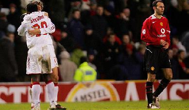 Το επόμενο ραντεβού (και πιο πρόσφατο) των δύο ομάδων ήταν έντεκα χρόνια αργότερα και πάλι για τα ημιτελικά του Πρωταθλητριών με τη Μίλαν να προκρίνεται και πάλι. Στον πρώτο αγώνα που έγινε στην Ιταλία, οι «ροσονέρι» επικράτησαν με 2-0 (33’ Σορμάνι, 49’ Χάμριν), ενώ στον επαναληπτικό της Αγγλίας το γκολ του Τσάρλτον στο 70’ δεν στάθηκε αρκετό για τους «κόκκινους διαβόλους». Στον τελικό του «Μπερναμπέου» η Μίλαν νίκησε τον Αγιαξ με 4-1 και κατέκτησε το τρόπαιο.