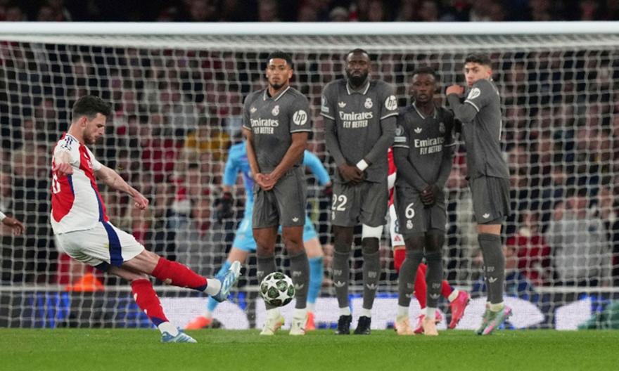 Τα έκανε όλα ο Ντεκλάν Ράις κόντρα στη Ρεάλ Μαδρίτης και η Άρσεναλ κέρασε την ομάδα του Αντσελότι... βασιλική τριάρα, παίρνοντας μεγάλο προβάδισμα πρόκρισης για τα ημιτελικά του Champions League.