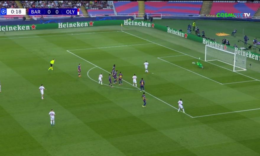 Μεγάλη ευκαιρία να ανοίξει το σκορ στο «Μονζουίκ» και να... παγώσει την Μπαρτσελόνα πριν καν συμπληρωθεί το πρώτο λεπτό, είχε ο Ολυμπιακός!