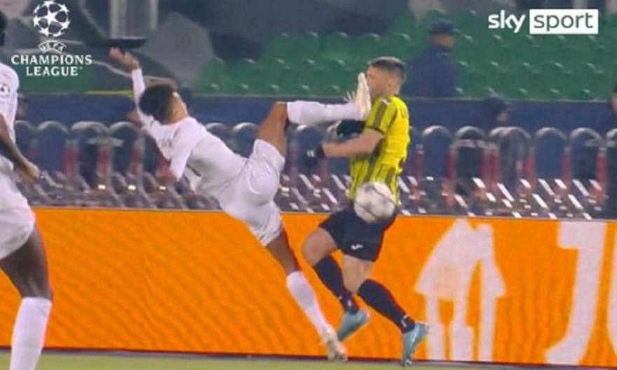Η «καρατιά» του χτύπησε αντίπαλο στο πρόσωπο και προφανώς δεν χρειάστηκε η παραμικρή σκέψη από τον ρέφερι για την αποβολή του ποδοσφαιριστή…