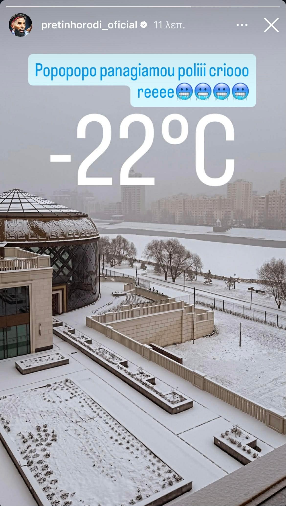 Μετά το τέλος του αγώνα, ο Ροντινέι με story στο Instagram, δεν αναφέρθηκε στο μεγάλο αποτέλεσμα των «ερυθρόλευκων», αλλά στο... πολικό ψύχος που επικρατεί στο Καζακστάν!