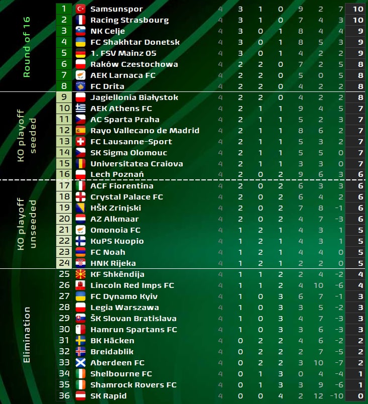 Διότι πέραν της πρωτοπόρου Σάμσουνσπορ που υποδέχεται την ΑΕΚ, το Στρασβούργο που έχει επίσης 10 πόντους δοκιμάζεται στη Σκωτία κόντρα στην Αμπερντίν.