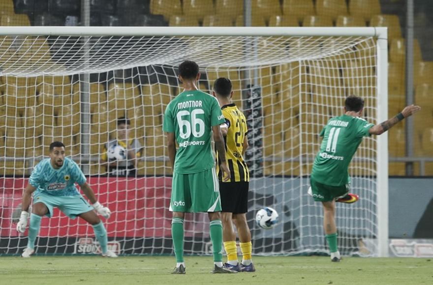 Σε μια ανύποπτη φάση ο Άρης Λεμεσού κέρδισε πέναλτι. Ένα απρόσεκτο μαρκάρισμα του Ρότα στον Κορέια στα όρια της περιοχής καταλογίστηκε αρχικά φάουλ και εν συνεχεία μέσω VAR πέναλτι, με τον Κβιλιτάια να ευστοχεί από την άσπρη βούλα για το 1-1 απέναντι στην ΑΕΚ.
