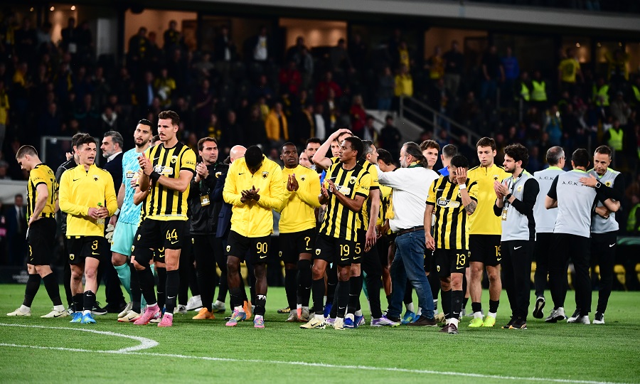 Και μέσα σε αυτό το σκηνικό, ο Μάριος Ηλιόπουλος κατέβηκε στον αγωνιστικό χώρο για να δώσει συγχαρητήρια στους παίκτες της ΑΕΚ. Λίγο αργότερα, όλοι μαζί -διοίκηση, τεχνικό τιμ και ποδοσφαιριστές- κατευθύνθηκαν προς την εξέδρα, ανταποδίδοντας το παρατεταμένο χειροκρότημα του κόσμου σε μια από τις πιο δυνατές στιγμές της χρονιάς.