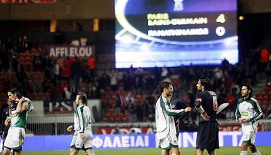 Ταπείνωση… Αυτό τα λέει όλα για τον χθεσινό Παναθηναϊκό. Οι «πράσινοι» κατάφεραν να… αναστήσουν την Παρί Σεν Ζερμέν (σ.σ. είχε να νικήσει από τις 28 Οκτωβρίου) και γνώρισαν την ήττα με το βαρύ 4-0, σαν σε προπόνηση. Παουλέτα (29', 47') και Καλού (51', 53'), οι σκόρερ των Γάλλων. Το «τριφύλλι» ήταν απογοητευτικό και με εξαίρεση το πρώτο 20λεπτο και τρεις- τέσσερις ακόμη ευκαιρίες, δεν έδειξε σε κανένα σημείο του παιχνιδιού στοιχεία μεγάλης ομάδας. Αντίθετα, θύμισε την… εποχή Μαλεζάνι, όταν οι «σφαλιάρες» στην Ευρώπη έπεφταν βροχή. Εστω και έτσι, πάντως, ο Παναθηναϊκός προκρίθηκε σαν πρώτος στην φάση των «32» του Κυπέλλου ΟΥΕΦΑ, εκμεταλλευόμενος το 1-1 της Χάποελ με την Μλάντα. Οι Παριζιάνοι και οι Ισραηλινοί είναι οι άλλες δυο ομάδες που παίρνουν το «εισιτήριο». «Πήραμε ένα μάθημα», τόνισε ο Βίκτορ Μουνιόθ. «Ζητάμε συγγνώμη. Πρέπει να επανορθώσουμε», πρόσθεσε ο Σωτήρης Λεοντίου.