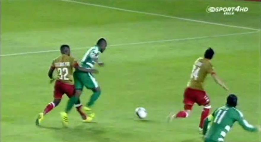 Σε μια δύσκολη φάση, ο Φάι μάρκαρε τον Εμποκού μέσα στην περιοχή, με τον παίκτη των «πράσινων» να πέφτει στο έδαφος (και να βλέπει μάλιστα κίτρινη κάρτα για «θέατρο»).