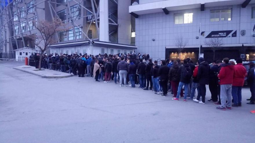 Από τα ξημερώματα περίμεναν κάποιοι οπαδοί του ΠΑΟΚ έξω από τα εκδοτήρια του γηπέδου της Τούμπας, προκειμένου να εξασφαλίσουν την παρουσία τους στο σπουδαίο παιχνίδι με την Σάλκε για τους «32» του Europa League.