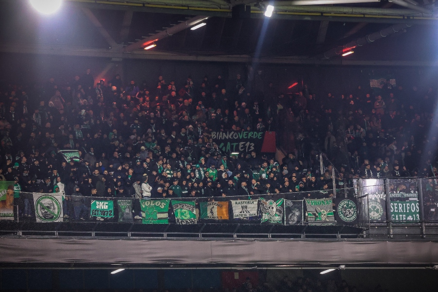 Παρά το κρύο και τις ακραίες καιρικές συνθήκες που επικρατούσαν όλη την ημέρα στο Ρότερνταμ, οι φίλαθλοι του «τριφυλλιού» δεν έχουν σταματήσει λεπτό να τραγουδούν και να στηρίζουν την ομάδα τους στη μάχη για τη διεκδίκηση ενός μεγάλου διπλού.