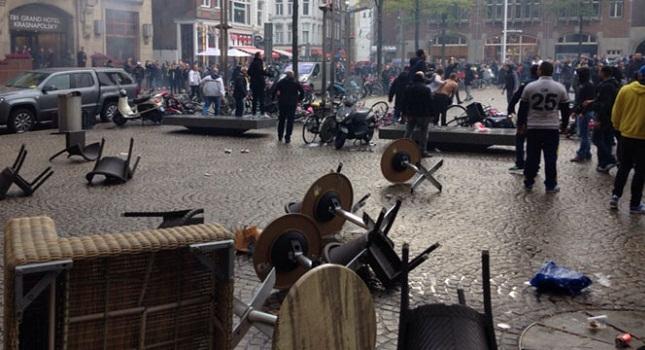 Κάθε άλλο παρά ήρεμα κύλησε η μέρα στο Άμστερνταμ, καθώς λίγες ώρες πριν το ματς με τον Άγιαξ, οπαδοί της Φενερμπαχτσέ ξεκίνησαν να πετούν καρέκλες και πέτρες στην αστυνομία, με αποτέλεσμα να προκαλέσουν την βίαιη αντίδραση της τελευταίας.