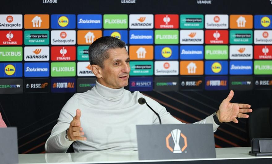 Όσα περιμένει από την Μπραν: «Περιμένω πράγματα από την ομάδα μου εγώ, όχι από την Μπραν… Περιμένω ένα δύσκολο ματς γιατί η Μπραν είναι οργανωμένη ομάδα, που τρέχει πολύ, που έχει νοοτροπία σκληρής δουλειάς. Περιμένω καλό ματς… Πρέπει να εμφανιστούμε συγκεντρωμένοι, να είμαστε επιθετικοί, να έχουμε ένταση στο ματς. Όλοι θέλουμε να πάρουμε τη νίκη για να κάνουμε και το βήμα προς την πρόκριση. Σε αυτό το επίπεδο όλοι γνωρίζουν πράγματα για όλους. Έπειτα έρχεται το ματς και είναι 11 εναντίον 11, ο αγωνιστικός χώρος, το μομέντουμ… Πάντα υπάρχουν στοιχεία που βοηθούν κάπως περισσότερο τη μία ή την άλλη ομάδα».