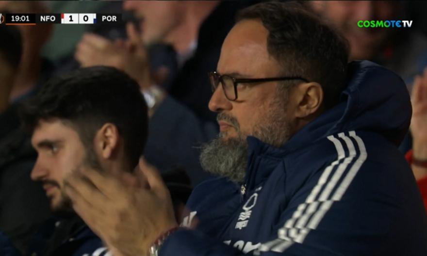Μάλιστα, η κάμερα έδειξε και τον ιδιοκτήτη της Φόρεστ, Βαγγέλη Μαρινάκη, ο οποίος και χειροκρότησε από τα επίσημα του γηπέδου το τέμα της ομάδας του.