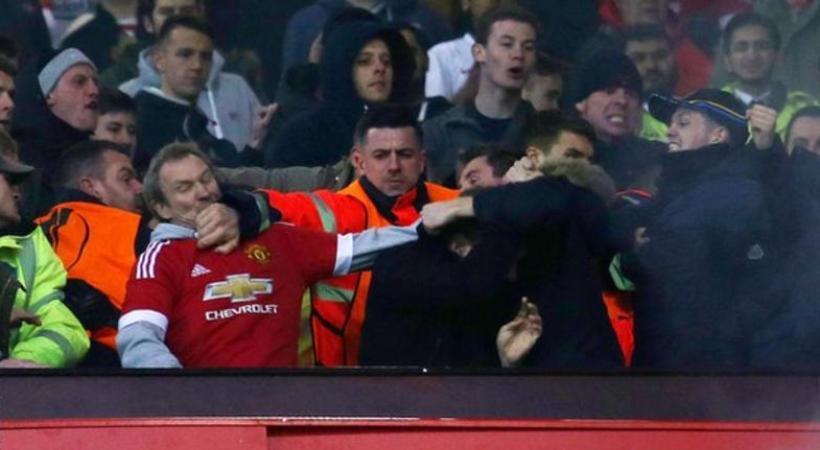 Ακολούθησαν συμπλοκές σώμα με σώμα με την ασφάλεια του γηπέδου να προσπαθεί να χωρίσει τους οπαδούς.