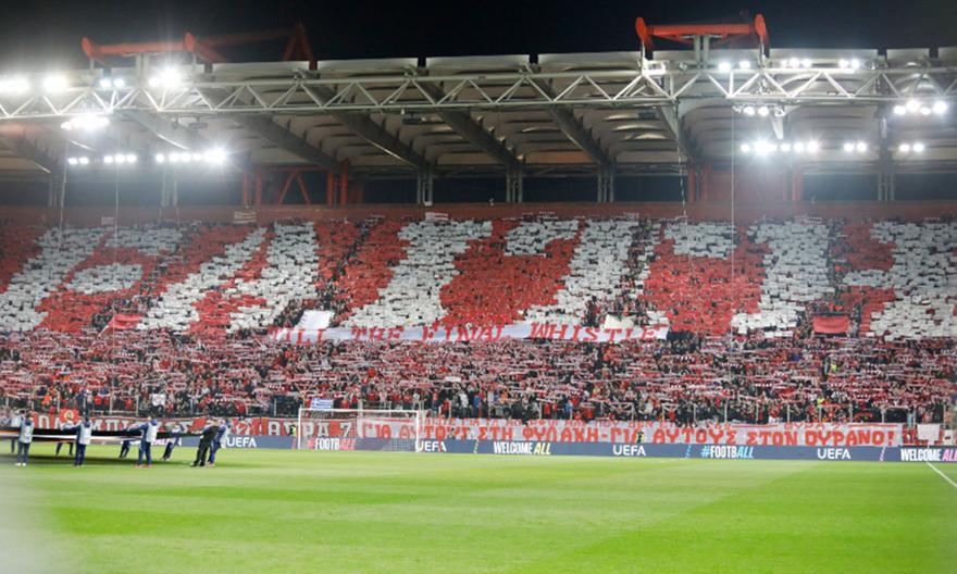 Λίγο πριν τη σέντρα της αναμέτρησης, οι οργανωμένοι φίλοι των «ερυθρόλευκων» ανέβασαν ένα εντυπωσιακό κορεό στο πέταλο της Θύρα 7, στο οποίο και αναγραφόταν η λέξη «Faith till the final whistle», δηλαδή «Πίστη για την πρόκριση μέχρι το τελευταίο σφύριγμα».