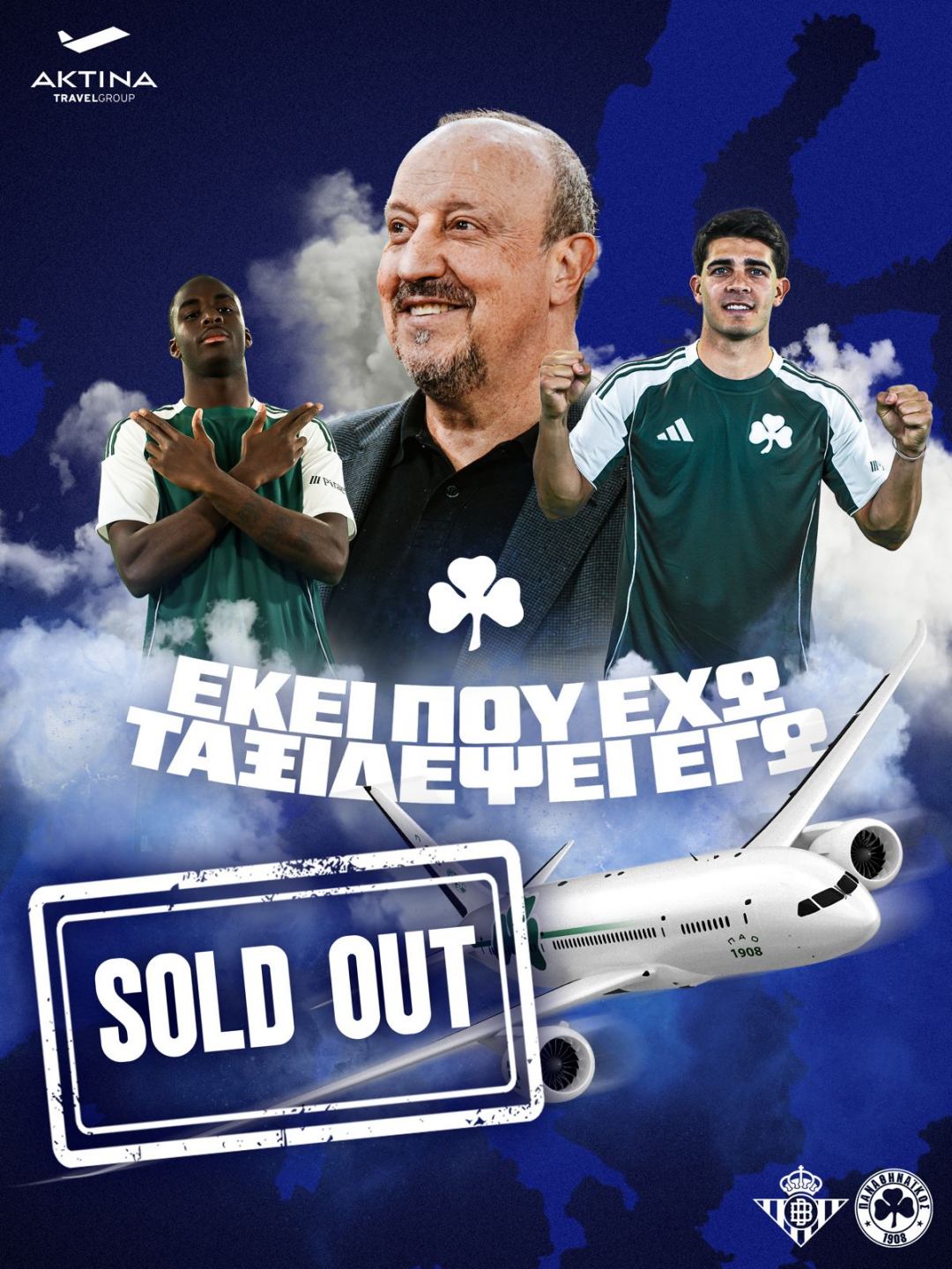 Με τους «πράσινους» να ανακοινώνουν σήμερα (10/03) ότι έκλεισαν οι θέσεις για το αεροπλάνο που θα χρησιμοποιήσουν οι φίλοι τους στο εκτός έδρας ματς με την Μπέτις. Ευχαριστώντας τους παράλληλα για την συμμετοχή!