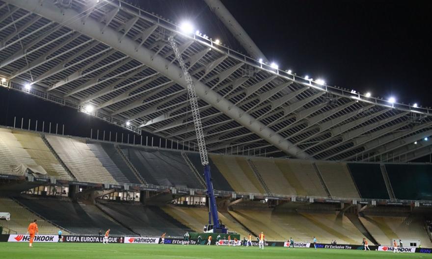Τις τελευταίες ημέρες διεξάγονται εργασίες σε ορισμένες θύρες του ΟΑΚΑ και, ως εκ τούτου, απόψε θα υπάρχουν ειδικά πανιά που θα καλύπτουν μεγάλο μέρος των εξεδρών.
