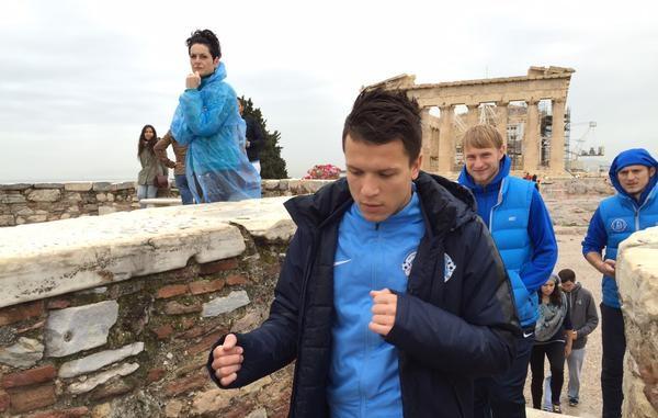 Λίγες ώρες πριν τη ρεβάνς στο «Καραϊσκάκη», η αποστολή της ουκρανικής ομάδας έκανε μια επίσκεψη στην Ακρόπολη και το μουσείο της.
