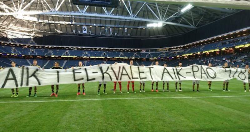 Πριν από τη σέντρα του ματς, οι παίκτες της ΑΪΚ, σήκωσαν πανό, με το οποίο ζητούσαν από τον κόσμο τους να δώσει το «παρών» στον επαναληπτικό, δείχνοντας την στήριξη του στην ομάδα.