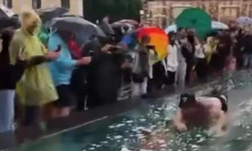Κάποιοι από αυτούς, εκμεταλλευόμενοι τη βροχή, θέλησαν να κλέψουν τις εντυπώσεις κάνοντας τσουλήθρα σε ένα σημείο της Πλατείας.