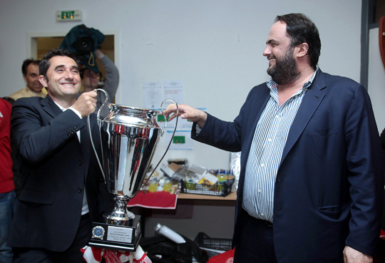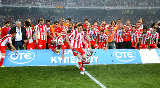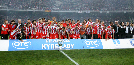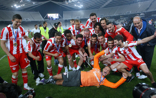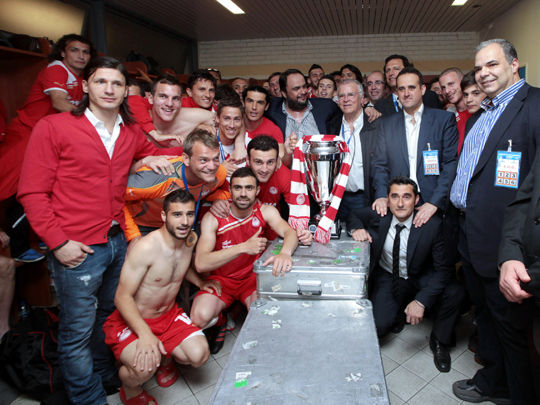Το 15ο νταμπλ για τον Ολυμπιακό είναι γεγονός. Οι παίκτες και ο Ερνέστο Βαλβέρδε πανηγύρισαν σαν μικρά παιδιά το τρόπαιο απέναντι από τον Ατρόμητο και ο φακός του Action Images ήταν εκεί.