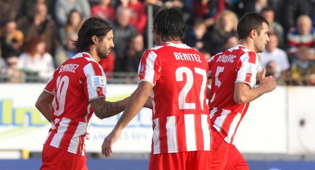 Οι Πειραιώτες παρατάσσονται με τον Ρομπέρτο στο τέρμα και από τα αριστερά προς τα δεξιά στην άμυνα με τους Μαζουακού, Σιόβα, Μποτία, Σαλίνο.