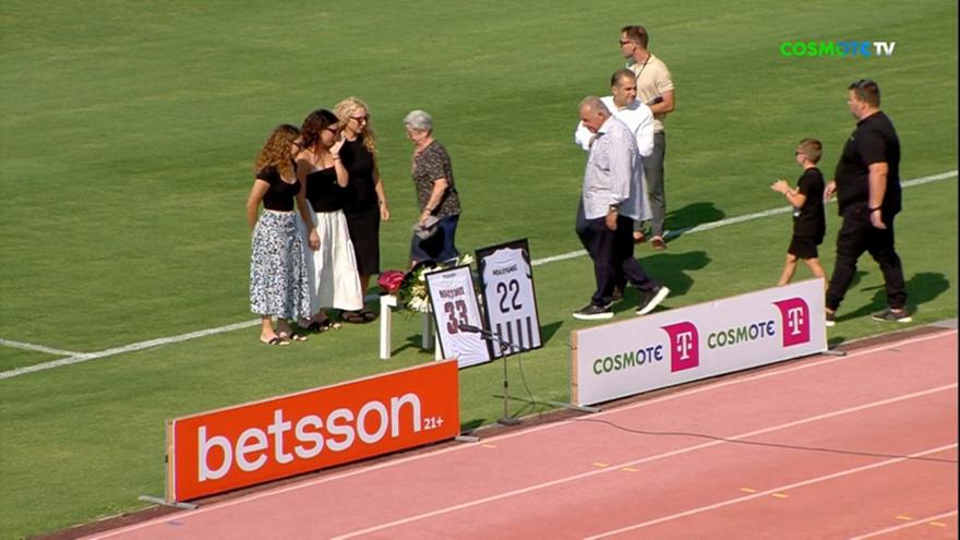 Νωρίτερα, πριν τη σέντρα, οι δύο ομάδες τίμησαν τη μνήμη του Παναγιώτη Μπαχράμη, ο οποίος έφυγε από τη ζωή πριν από 15 χρόνια.