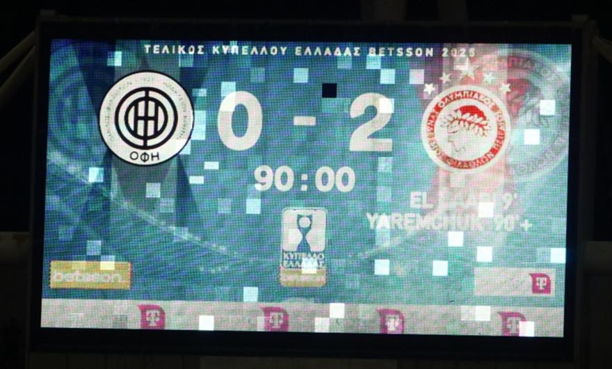 Ο Ολυμπιακός ήταν ο μεγάλος νικητής του τελικού του Κυπέλλου Ελλάδας Betsson στο ΟΑΚΑ, με τους «ερυθρόλευκους» να επικρατούν 2-0 του ΟΦΗ και να κατακτούν τον τρόπαιο για 29η φορά στην ιστορία τους και πρώτη μετά από πέντε χρόνια.