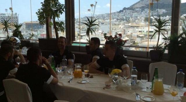 Η ομάδα μέσω του λογαριασμού στο Twitter ανέβασε φωτογραφία με τους παίκτες να προετοιμάζονται για το κρίσιμο παιχνίδι μετά το γεύμα τους.