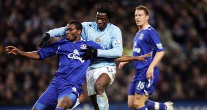 Η Έβερτον πέρασε νικηφόρα από το Μάντσεστερ επικρατώντας με 2-0 της Σίτι για την 27η αγωνιστική της Premiership και σκαρφάλωσε στην τέταρτη θέση της βαθμολογίας. Ο Γιακούμπου Αγεγκμπένι με κοντινή προβολή μετά από γύρισμα του Κέιχιλ και ο Τζόλεον Λέσκοτ με κεφαλιά έπειτα από σέντρα του Κάρσλεϊ πέτυχαν τα γκολ των «ζαχαρωτών» που έφτασαν τους 50 βαθμούς, τρεις περισσότερους από Λίβερπουλ (που όμως έχει ένα ματς λιγότερο) και Άστον Βίλα. Στο 93' οι "πολίτες" έμειναν με δέκα παίκτες λόγω αποβολής του Πετρόφ επειδή αποπειράθηκε να κλωτσήσει τον Όσμαν από πίσω.