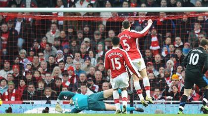 «Διαβολικό» ήταν το πέρασμα της Μάντσεστερ Γιουνάιτεντ από το «Εμιρέιτς», αφού συνέτριψε 3-1 την Άρσεναλ, στο ντέρμπι της 24ης αγωνιστικής της Premier League. Οι πρωταθλητές Αγγλίας προηγήθηκαν με ένα καταπληκτικό γκολ του Νάνι στο 33΄, ενώ από ασίστ του Πορτογάλου στο 37΄, ο Ρούνεϊ έκανε το 2-0, με το 20ο γκολ του στο πρωτάθλημα. Ο Παρκ στο 52΄ διεύρυνε το σκορ, για να μειώσει στο 80΄ ο Βερμάελεν. Η ομάδα του Άλεξ Φέργκιουσον, που επιβλήθηκε των «κανονιέρηδων» εκτός έδρας στο πρωτάθλημα για πρώτη φορά μετά τη σεζόν 2004-05 (4-2), πλησίασε στο έναν βαθμό την Τσέλσι, ενώ οι γηπεδούχοι παρέμειναν στο -5 από την κορυφή.