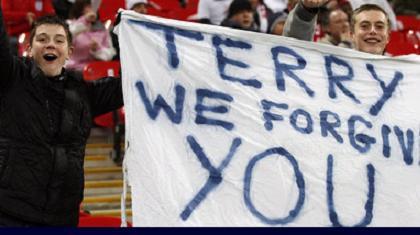 Ελάχιστες αποδοκιμασίες και αρκετά χειροκροτήματα «εισέπραξε» ο Τζον Τέρι στο φιλικό της Αγγλίας με την Αίγυπτο στο «Γουέμπλεϊ» (3-1). Η αντίδραση του κόσμου απέναντι στον αμυντικό της Τσέλσι, μετά την πρόσφατη αποκάλυψη πως διατηρούσε στο παρελθόν παράνομο δεσμό με την τότε φίλη του άλλοτε συμπαίκτη του στους «μπλε», Γουέιν Μπριτζ, αποτελούσε ερωτηματικό πριν τη σέντρα. Τελικά πέρα από κάποια μεμονωμένα «σφυρίγματα», η πλειονότητα του κόσμου δεν είχε αρνητική στάση απέναντί του, ενώ υπήρξαν και κάποια πανό που του έδιναν… άφεση αμαρτιών (βλ. φωτο).