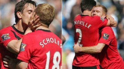 Έκπληξη προκάλεσε στην Αγγλία ο τρόπος με τον οποίο ο Γκάρι Νέβιλ συνεχάρη τον Πολ Σκόουλς για το γκολ που πέτυχε στη χθεσινή νίκη της Γιουνάιτεντ στην έδρα της Σίτι, στο ντέρμπι του Μάντσεστερ.