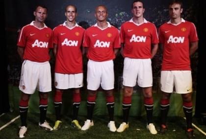 Νέος χορηγός που αναγράφεται στην εμφάνιση της αγγλικής ομάδας είναι η εταιρεία Αon. Η συγκεκριμένη εταιρεία εδρεύει στη Νέα Υόρκη και είναι η μεγαλύτερη παγκοσμίως στο χώρο της μεσιτείας ασφαλίσεων. Η συμφωνία πραγματοποιήθηκε το προηγούμενο καλοκαίρι και η Μάντσεστερ Γιουνάιτεντ θα λάβει 80 εκατομμύρια λίρες (95 εκατ. ευρώ) για τέσσερα χρόνια, ποσό που είναι και το μεγαλύτερο παγκοσμίως. Οι «κόκκινοι διάβολοι» θα λαμβάνουν περίπου 24 εκατομμύρια ευρώ το χρόνο, ξεπερνώντας την συμφωνία της Μπάγερν με την T-Home που αποφέρει στην γερμανική ομάδα 20 εκατομμύρια ευρώ ετησίως.