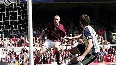 Ισόπαλο 1-1 έληξε το Λονδρέζικο ντέρμπι μεταξύ Άρσεναλ και Τότεναμ στο «Χάιμουρι», με τους «πετεινούς» να έχουν το προβάδισμα για την 4η θέση, που οδηγεί στο Τσάμπιονς Λιγκ της επόμενης περιόδου. Οι φιλοξενούμενοι, μάλιστα, είχαν καταφέρει να προηγηθούν με 0-1 με τον Ρόμπι Κιν, αλλά ο Τιερί Ανρί με εκπληκτικό πλασέ έφερε το ματς στα ίσια έξι λεπτά πριν την λήξη. Με δέκα παίκτες έπαιζε η Τότεναμ, καθώς αποβλήθηκε ο Ντάβιτς στο 85’. Στα υπόλοιπα ματς για την 36ης αγωνιστική, ελπίδες για έξοδο στο ΟΥΕΦΑ έχουν πλέον η Μπόλτον, που επέστρεψε στις επιτυχίες κόντρα στην Τσάρλτον με 4-1 και η Νιουκάστλ που νίκησε εύκολα την Γουέστ Μπρομ. Τέλος, η «μάχη» για την σωτηρία καλά κρατεί, με την Μπέρμιγχαμ να παραχωρεί «λευκή» ισοπαλία κόντρα στην Έβερτον, ενώ η Πόρτσμουθ επικράτησε στο τέλος με εκτέλεση πέναλτι (2-1) απέναντι στην μαχητική Σάντερλαντ και βρίσκεται πλέον δύο βαθμούς από την επικίνδυνη ζώνη.